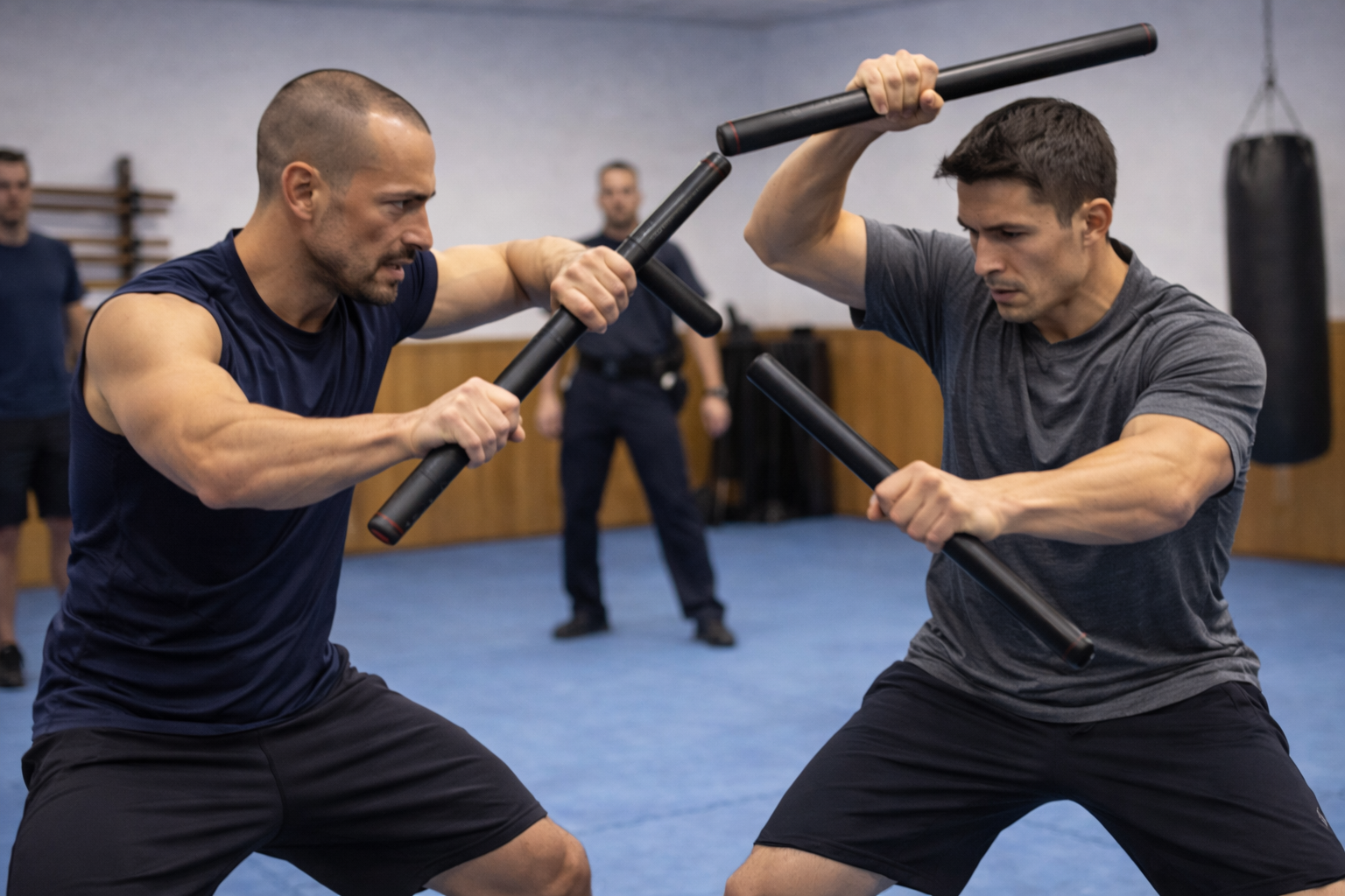La formation au tonfa vise à développer la maîtrise technique, la rapidité et la précision des interventions, tout en renforçant force, équilibre et réflexes. Elle prépare également à contrôler efficacement les situations conflictuelles en toute sécurité.